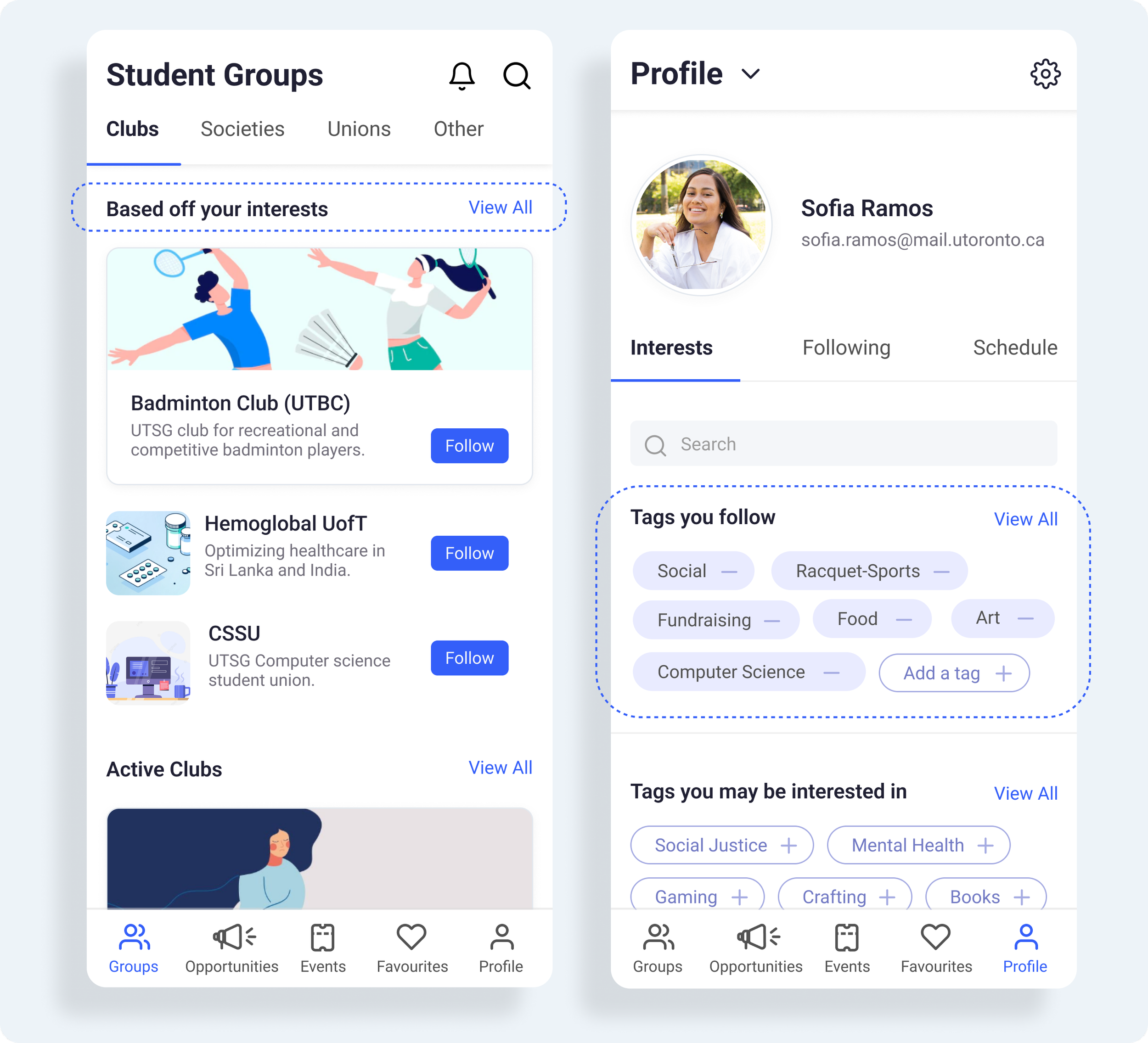 Solution: Through the tag system, users are able to get suggestions on clubs and events that they like through following tags that they’re interested in.
